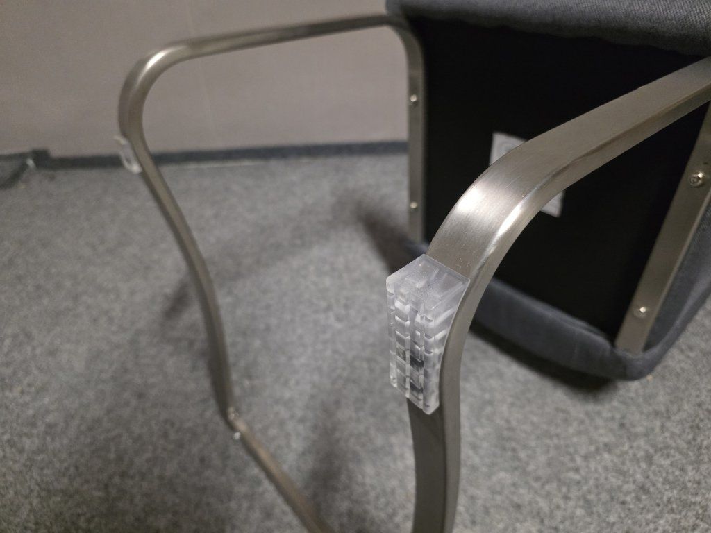 II. jakost (jedna nožička ulomená vis foto - nemá vliv na funkci). Potah látka, konstrukce nerez. Nosnost 140 kg. Cena dohromady. Šířka 44 cm, hloubka 56 cm, výška 103 cm, výška sedáku: 49 cm. 500P