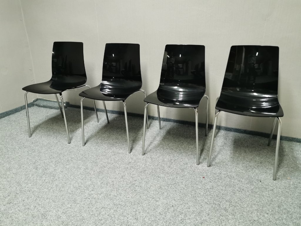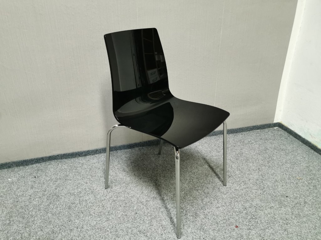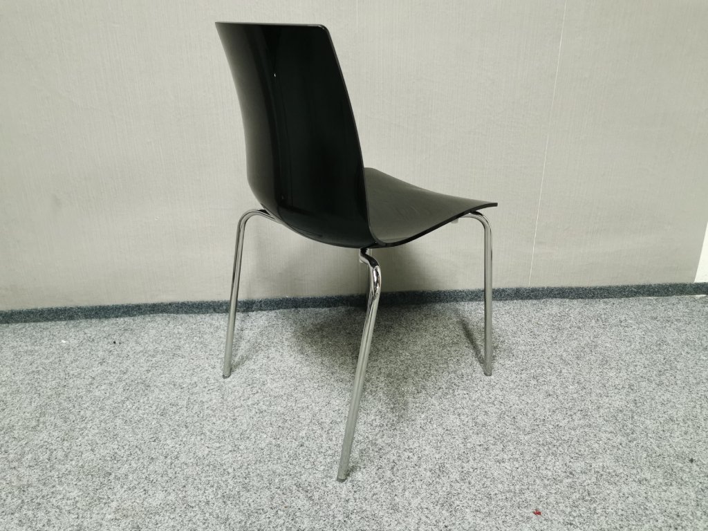 Materiál polykarbonát, nohy kov chrom. STOHOVATELNÉ. Nosnost 110 kg. Italský výrobce UP-ON. Šířka 42cm, hloubka 48cm, výška 83cm, výška sedáku: 48cm. 1/100,70,60/30