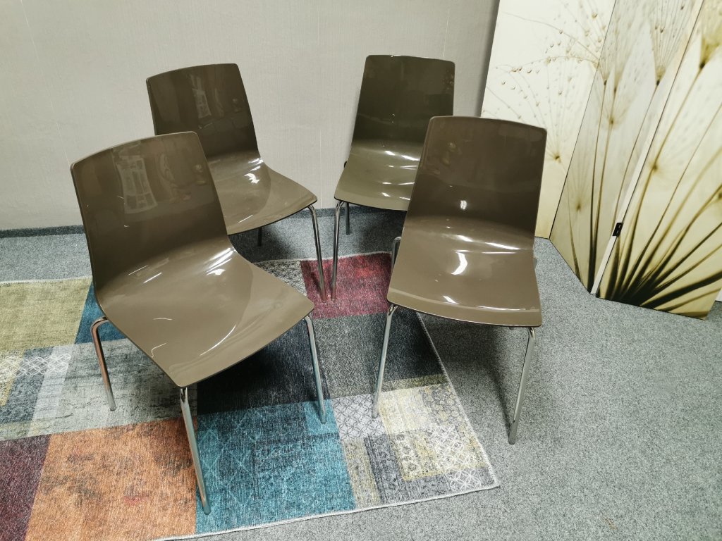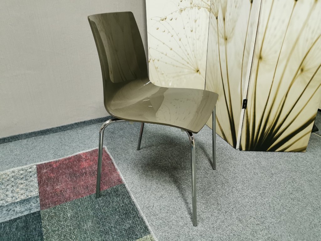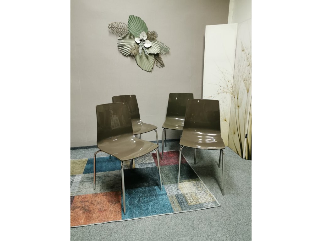 Materiál polykarbonát, nohy kov chrom. STOHOVATELNÉ. Nosnost 110 kg. Italský výrobce UP-ON. K DISPOZICI 2 SADY. Šířka 42 cm, hloubka 48 cm, výška 83 cm, výška sedáku: 48 cm. 1/100,70,60/30