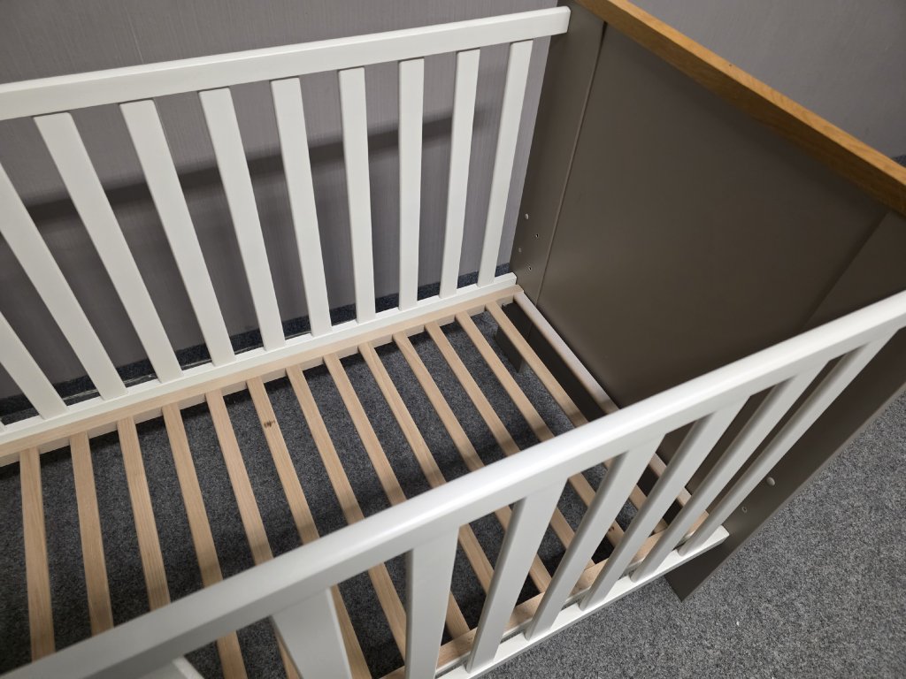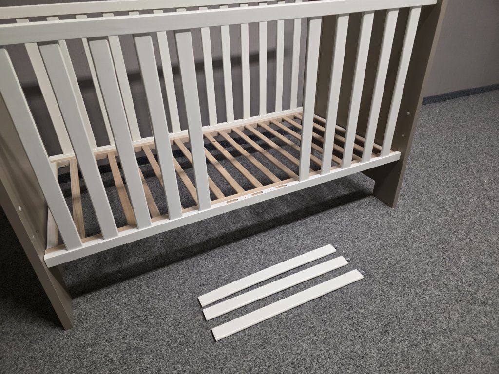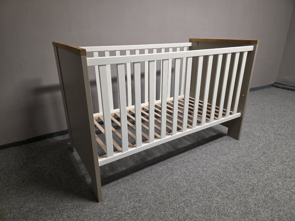 Materiál dřevo, lamino. Nastavitelná výška lehu: 28, 38 a 48 cm. Délka 145 cm, šířka 78 cm, výška 93 cm. Rozměr pro matraci: 70x140 cm. 600P
