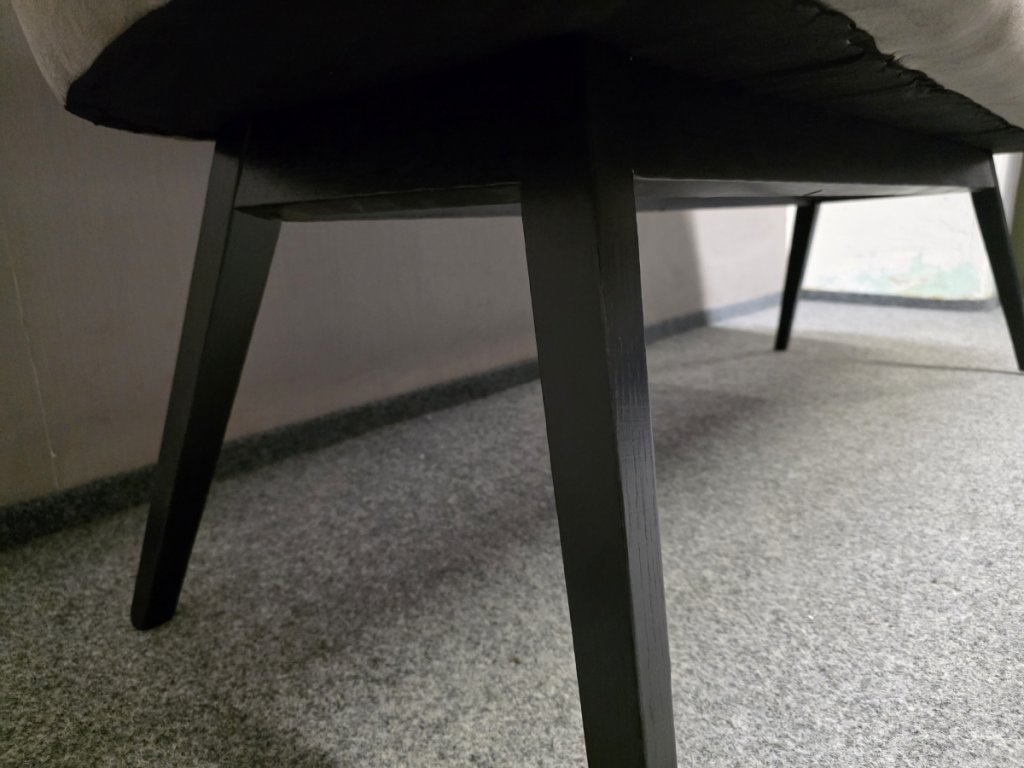 Potah látka, nohy masiv lakovaný. Délka 160 cm, hloubka 60 cm, výška 90 cm, výška sedáku: 45 cm, hloubka sedáku: 48 cm. 1/165,65,70/35