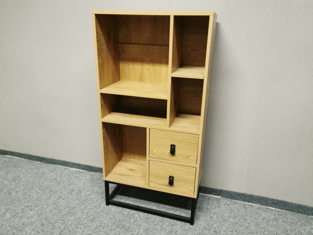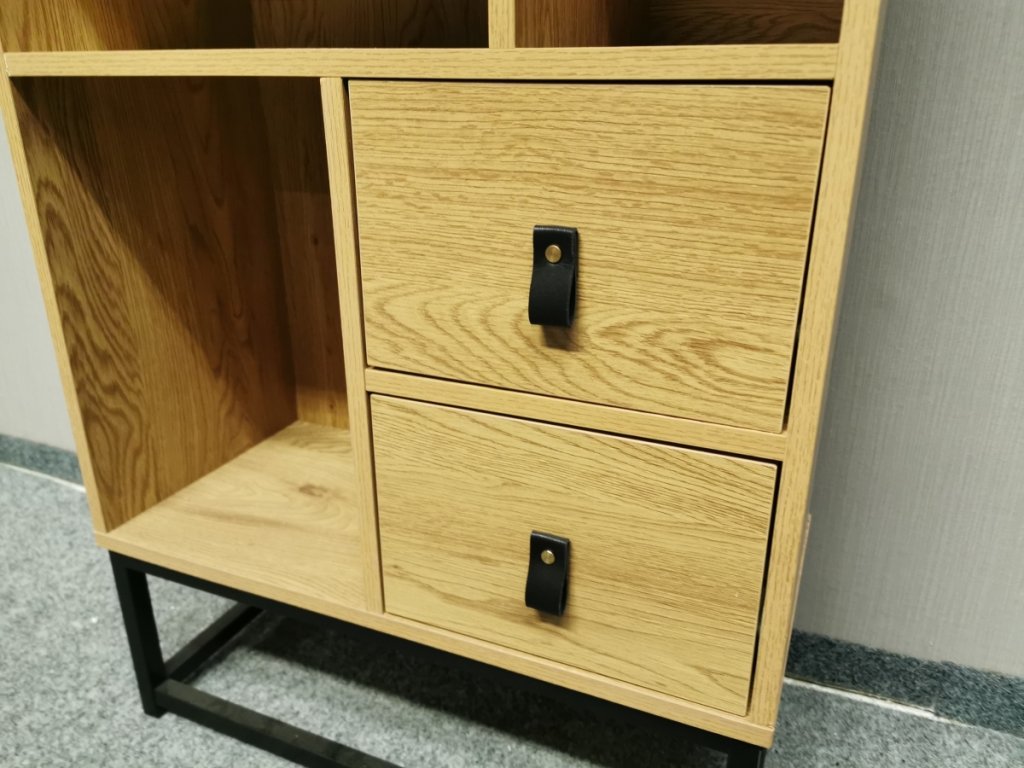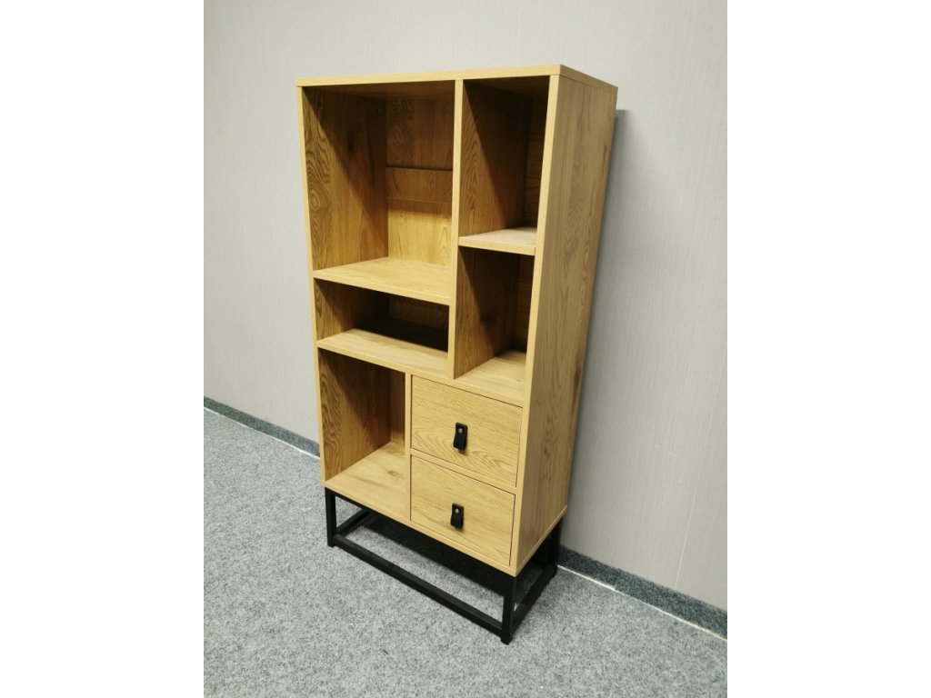 II. jakost (oděrka viz foto). Materiál lamino, kov. 2 šuplíky. Šířka 60cm, hloubka 29cm, výška 120cm. 400P