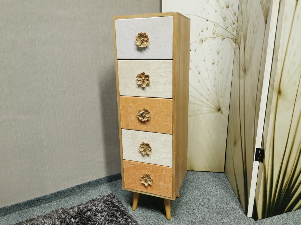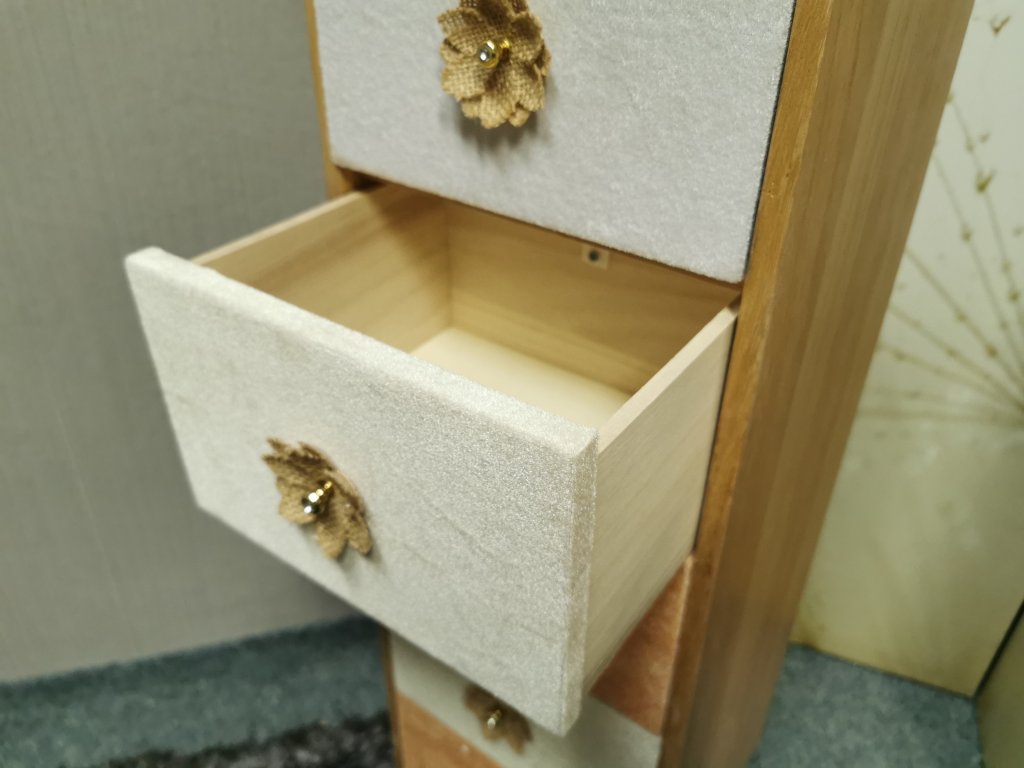 Materiál dřevo, šuplíky potažené plyšem. K DISPOZICI VÍCE KUSŮ. Šířka 25x25 cm, výška 88 cm. P