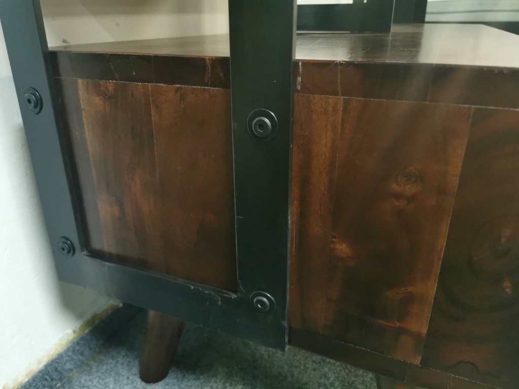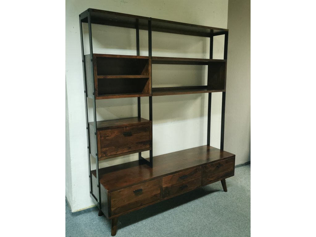 Materiál masiv akát lakovaný, masivní železná konstrukce. Běžná cena 30.000,-Kč.2 šuplíky, 3 výklopná dvířka. K dispozici více kusů. Délka 163 cm, hloubka spodku: 50 cm, hloubka vršku: 30 cm, výška 196 cm. Prostor pro TV: šířka 104 cm, výška 74 cm. 2/95,35,170/140
