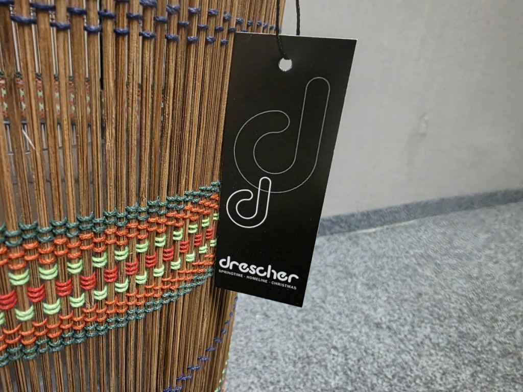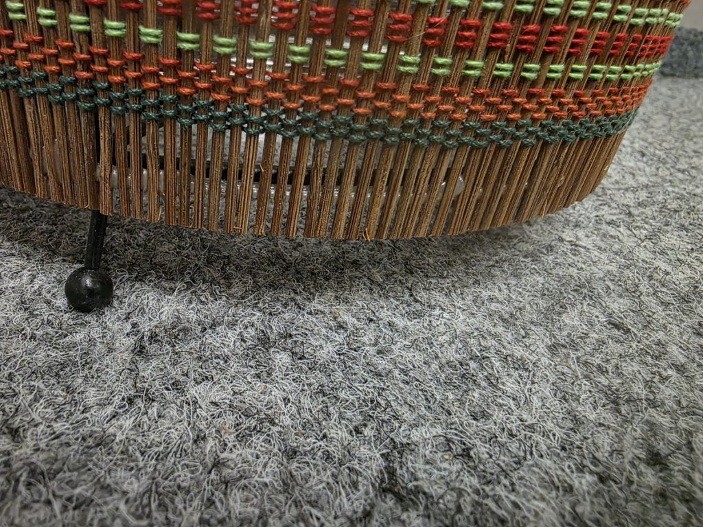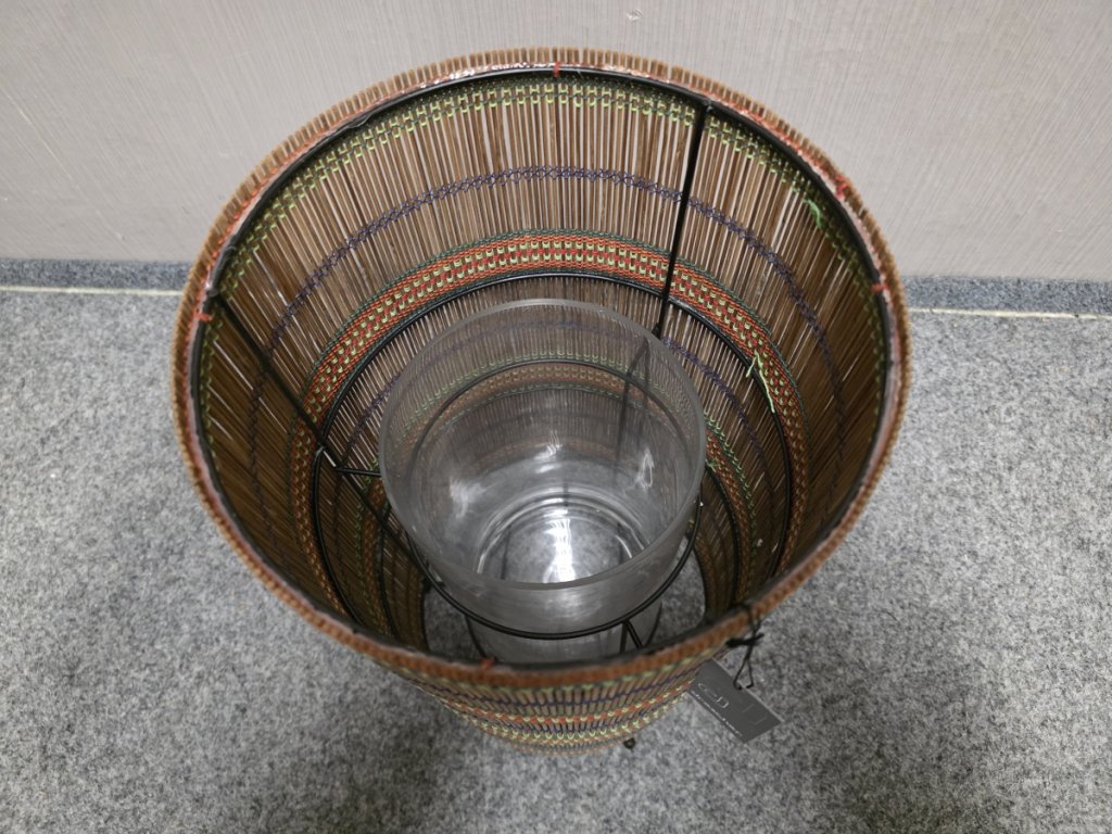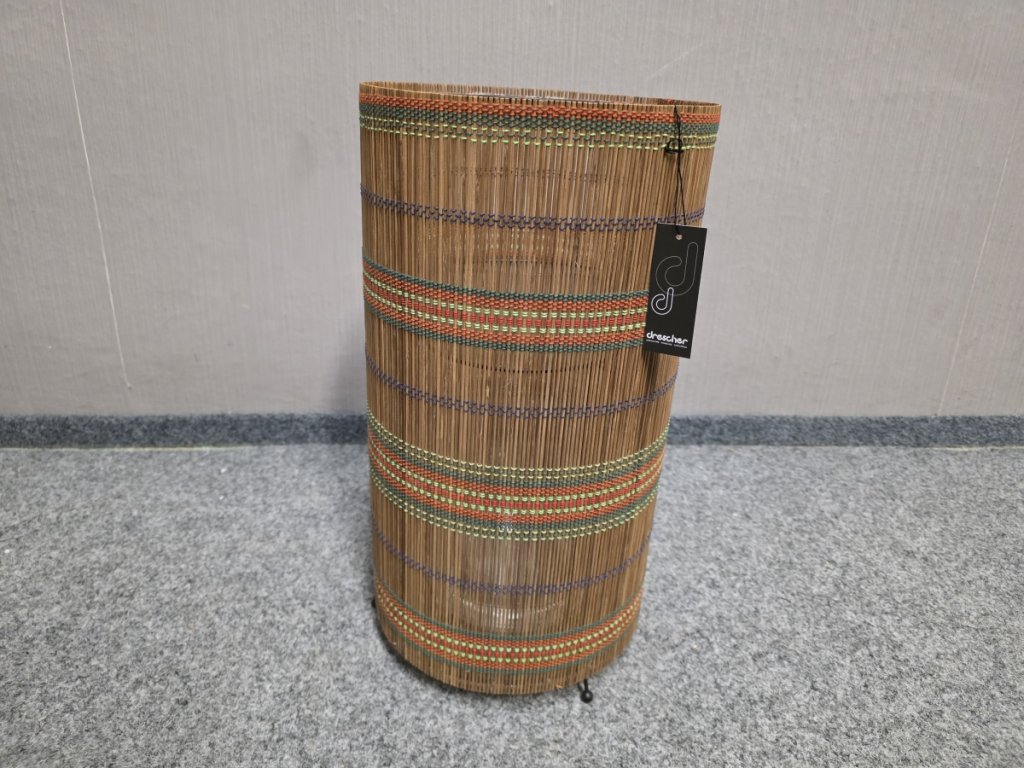 Materiál kov, ratan, sklo. Značka DRESCHER. K dispozici více kusů. Průměr: 24 cm, výška 44 cm. 150P