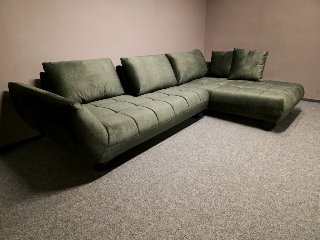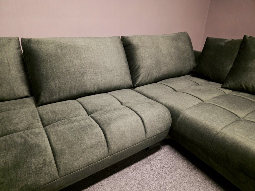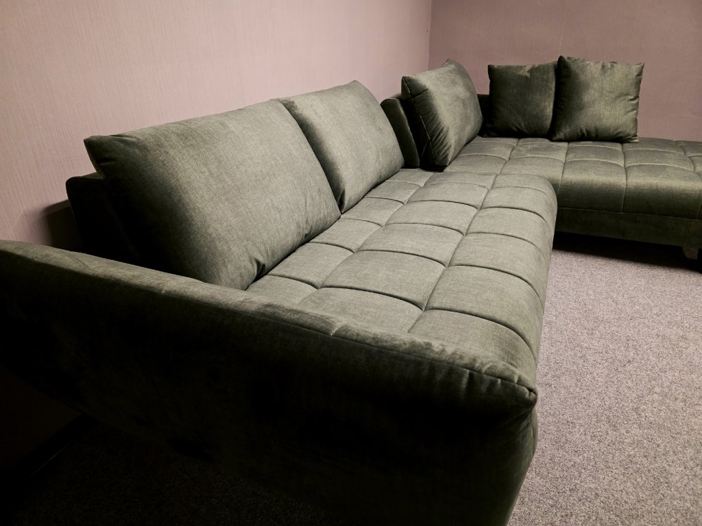 Potah látka, celočalouněné. Značka UNO. Nerozkládací, posuvná opěradla. Cena s polštáři. Zprava: 210x320 cm, výška 83 cm, výška sedáku: 48 cm, hloubka sedáku: 55-77 cm, výška nohou: 13 cm.