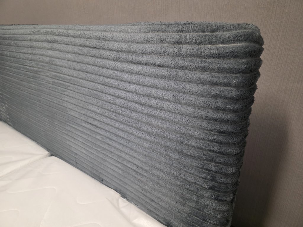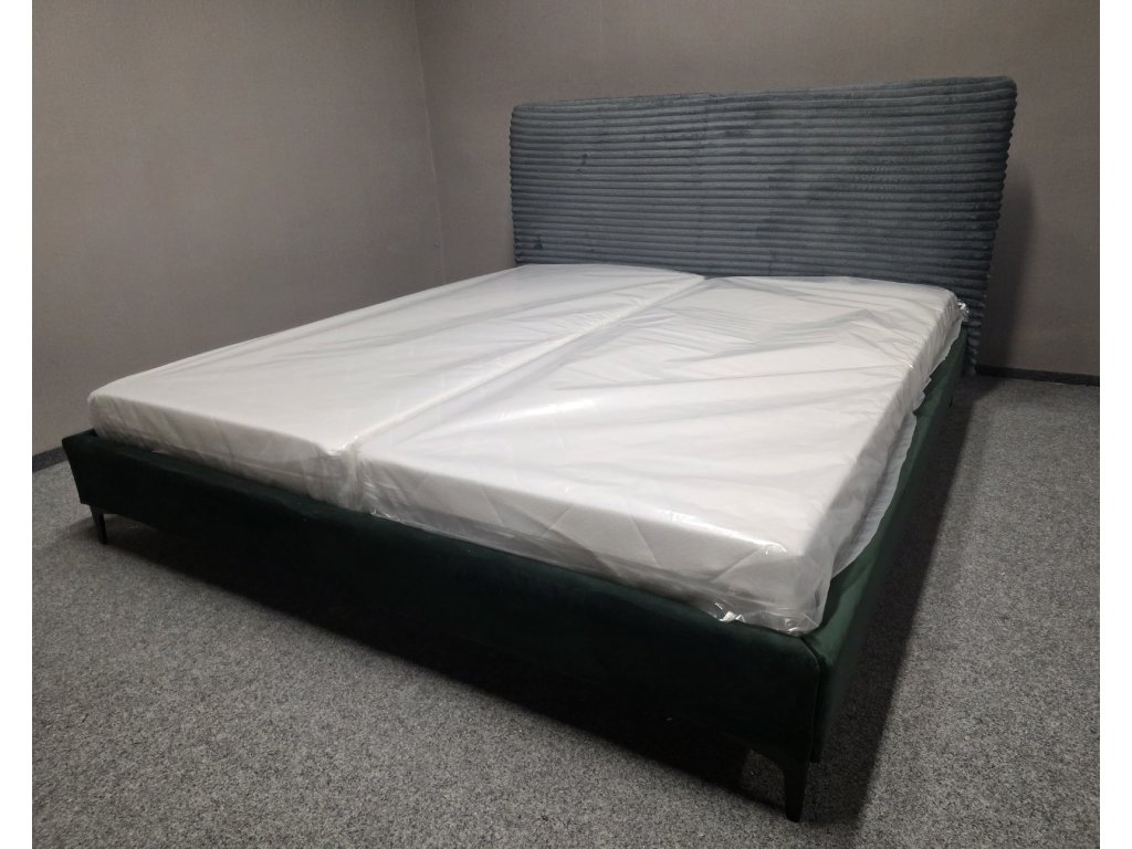 Potah: čelo manšestr, boky semiš. Cena za komplet. Integrovaný lamelový rošt. Matrace PU pěna 7 zón, pratelný potah, výška 18 cm. Lůžko: 180x200 cm, čelo: 113x200 cm, výška boků: 32 cm, výška lůžka: 47 cm, délka celkem: 217 cm, šíře celkem: 194 cm.