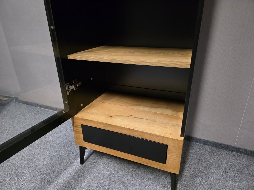 Vystavený kus. Materiál lamino, dekor divoký dub. 1 dveře, 1 šuplík se systémem PUSH TO OPEN. Šířka 60 cm, hloubka 40 cm výška 200 cm. 70,150,30/60