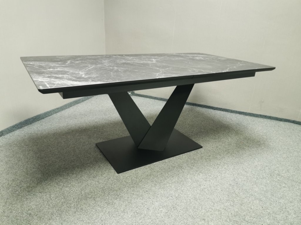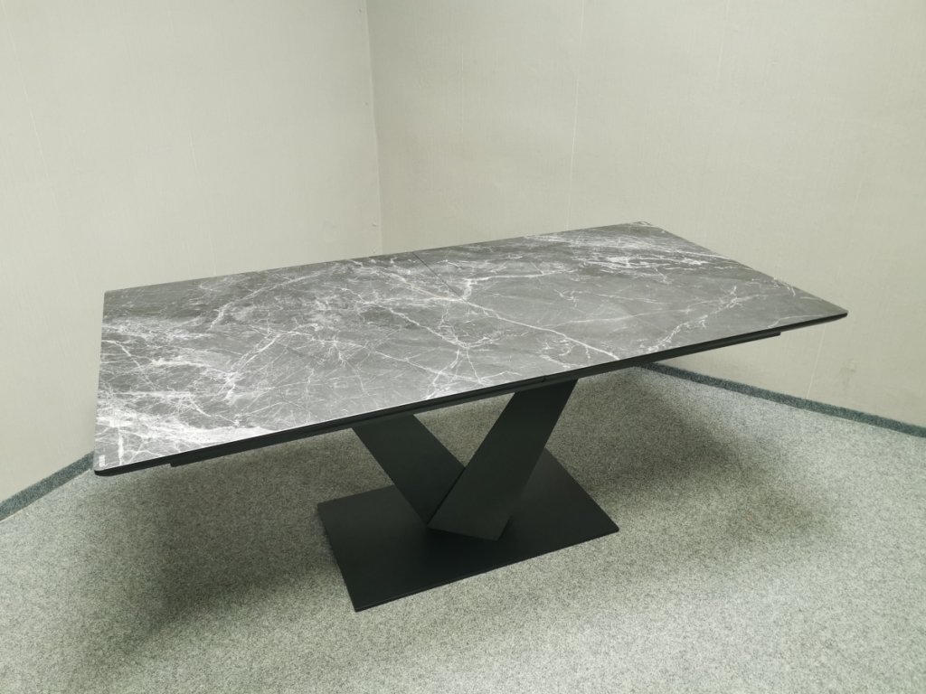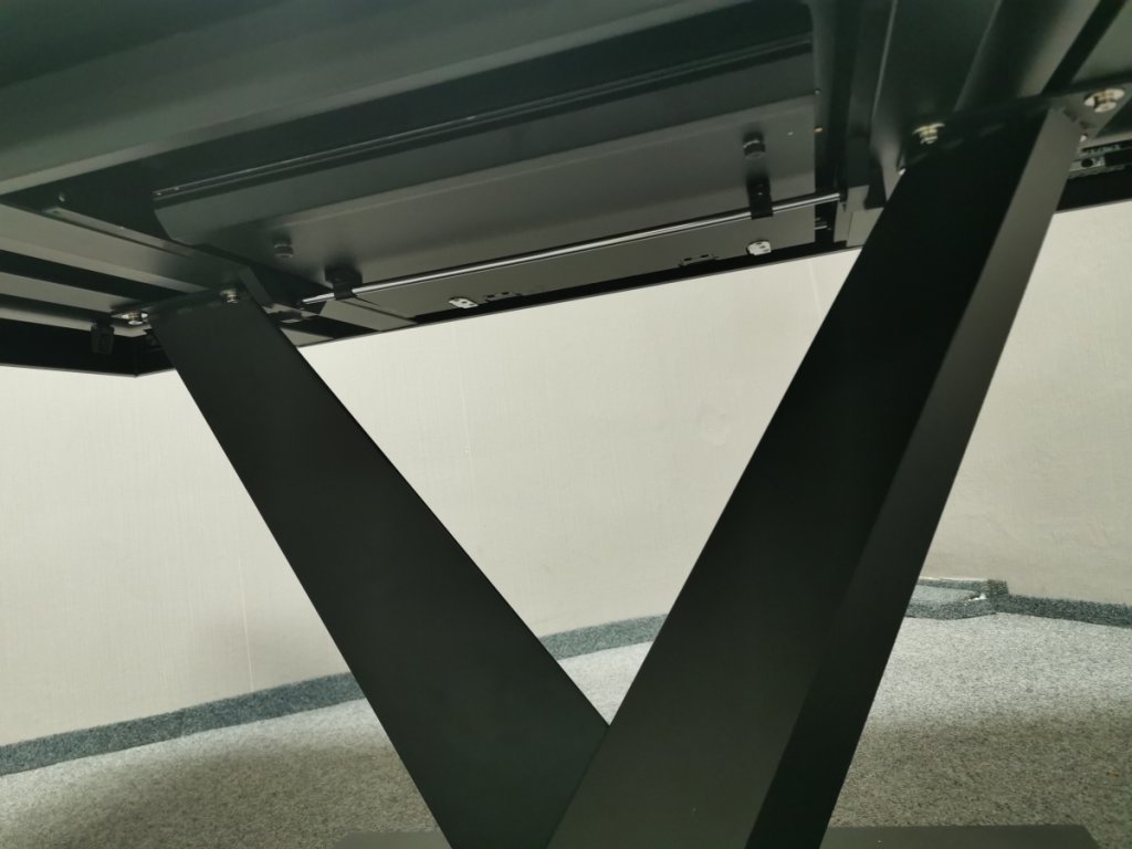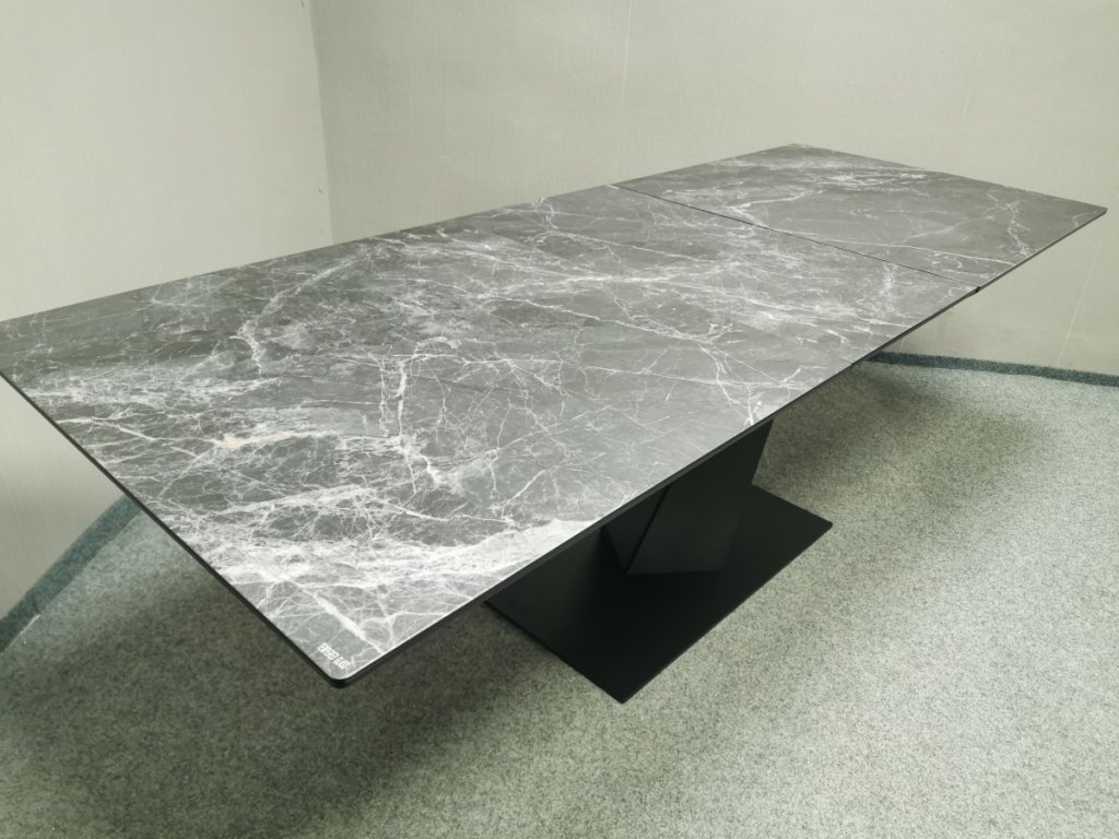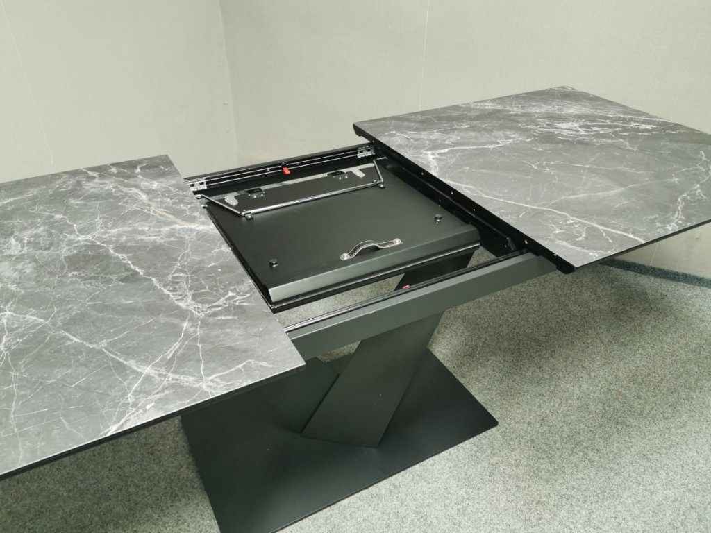 II. jakost (oděrky na noze viz foto). Materiál kov, MDF, vršek bezpečnostní sklo. Značka UNO. Rozkládací. 90x180 + 50 cm, výška 76 cm. 2/180,90,35/80