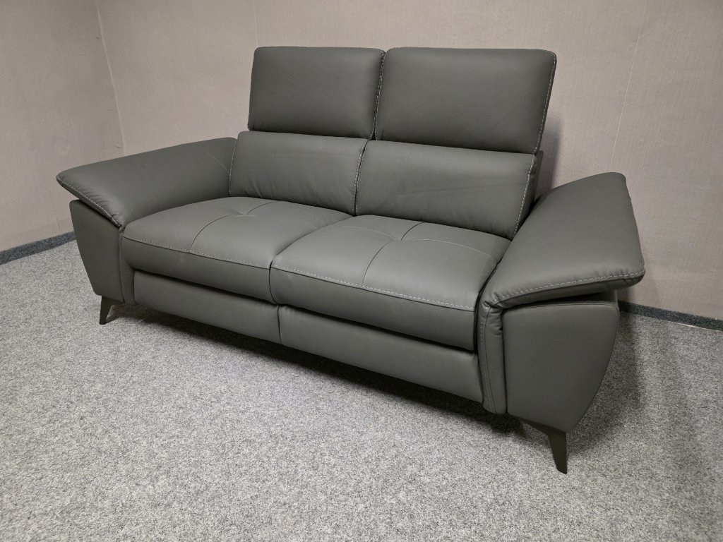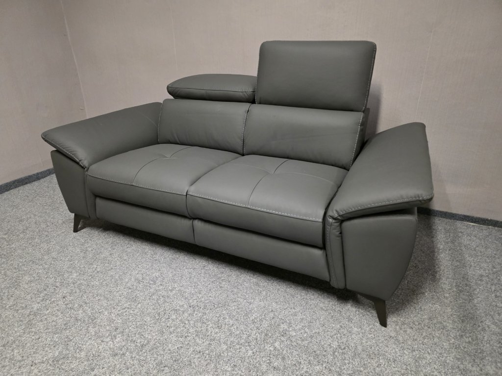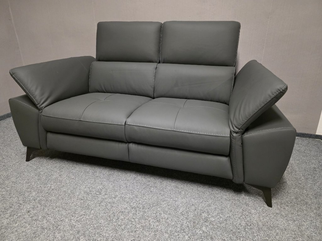 Potah kůže, koženka. Značka UNO. Nerozkládací, polohovací opěrky hlavy a rukou. Délka 177 cm, hloubka 100 cm, výška 75-98 cm, výška sedáku: 49 cm, plocha sedáku: 55x116 cm, výška nohou: 100 cm.