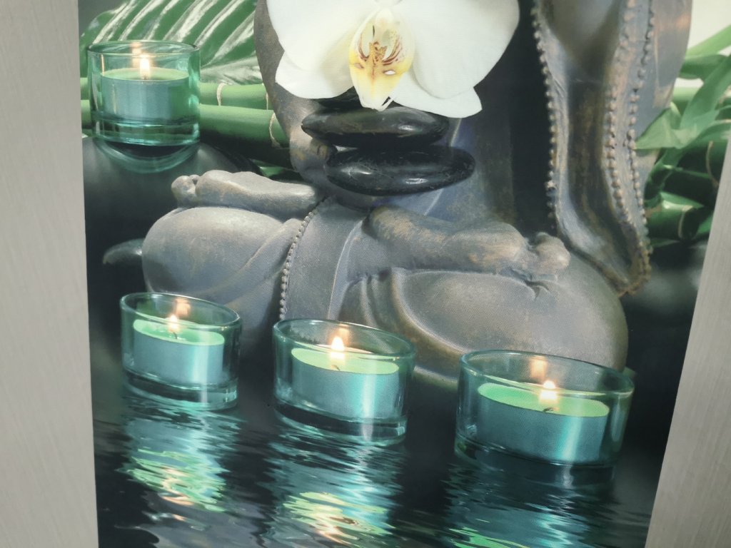 Plátno na dřevěném rámu. S LED světýlky na 2 baterie. K DISPOZICI VÍCE KUSŮ. 35x104,5 cm. P