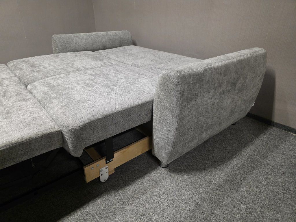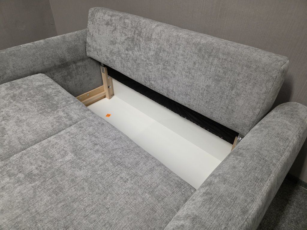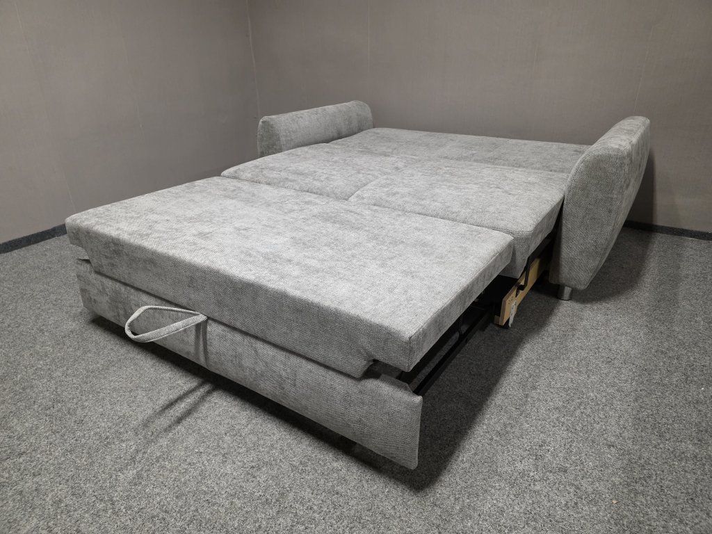 Potah látka, celočalouněné. Rozkládací, úložný prostor. Délka 180 cm, hloubka 95 cm, výška 93 cm. Lůžko 140x205 cm, výška sedáku 47 cm.