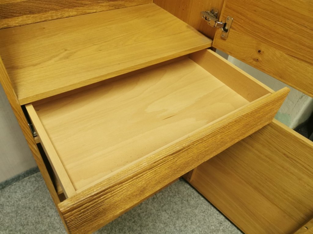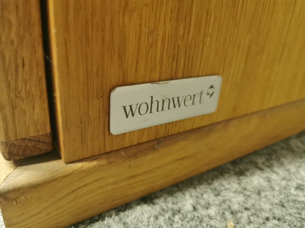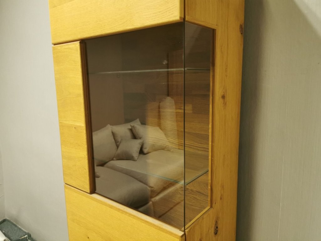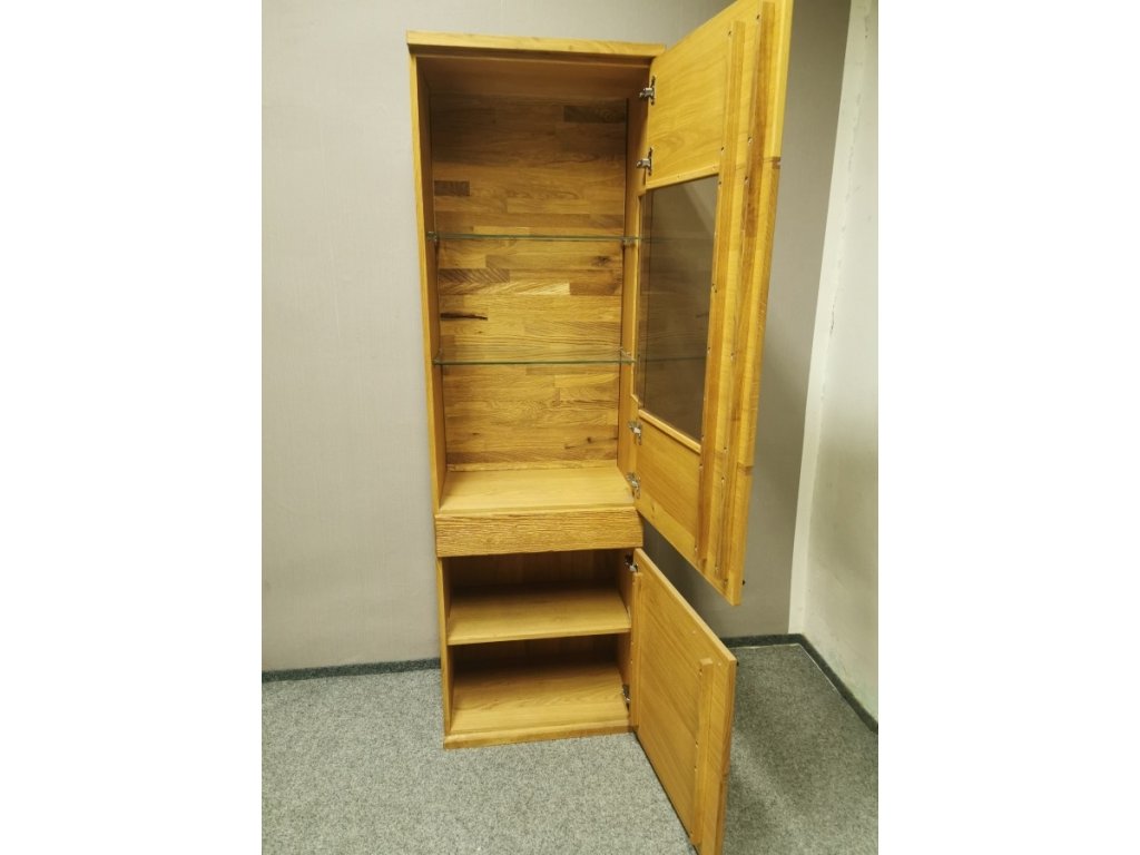 Materiál tvrdé dřevo, lamino. Značka WOHNWERT. 2 dveře s tlumením zavírání, 1 šuplík, tmavé sklo. Kombinace dřevo-lamino. Šířka 61 cm, hloubka 41 cm, výška 196 cm. 2/70