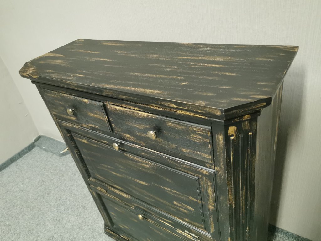 II. jakost (oděrky viz foto). Materiál dřevo, lamino, MDF. 2x výklopná dvířka, 2x šuplík. Šířka 93cm, hloubka 35cm, výška 110cm. 1/60