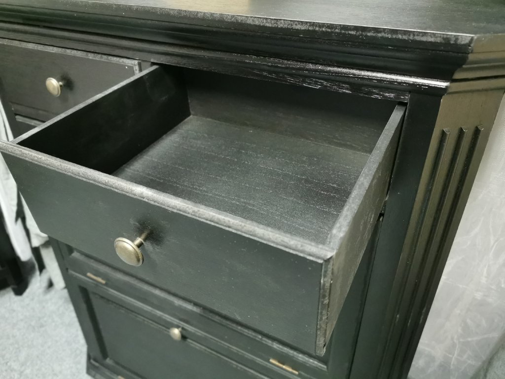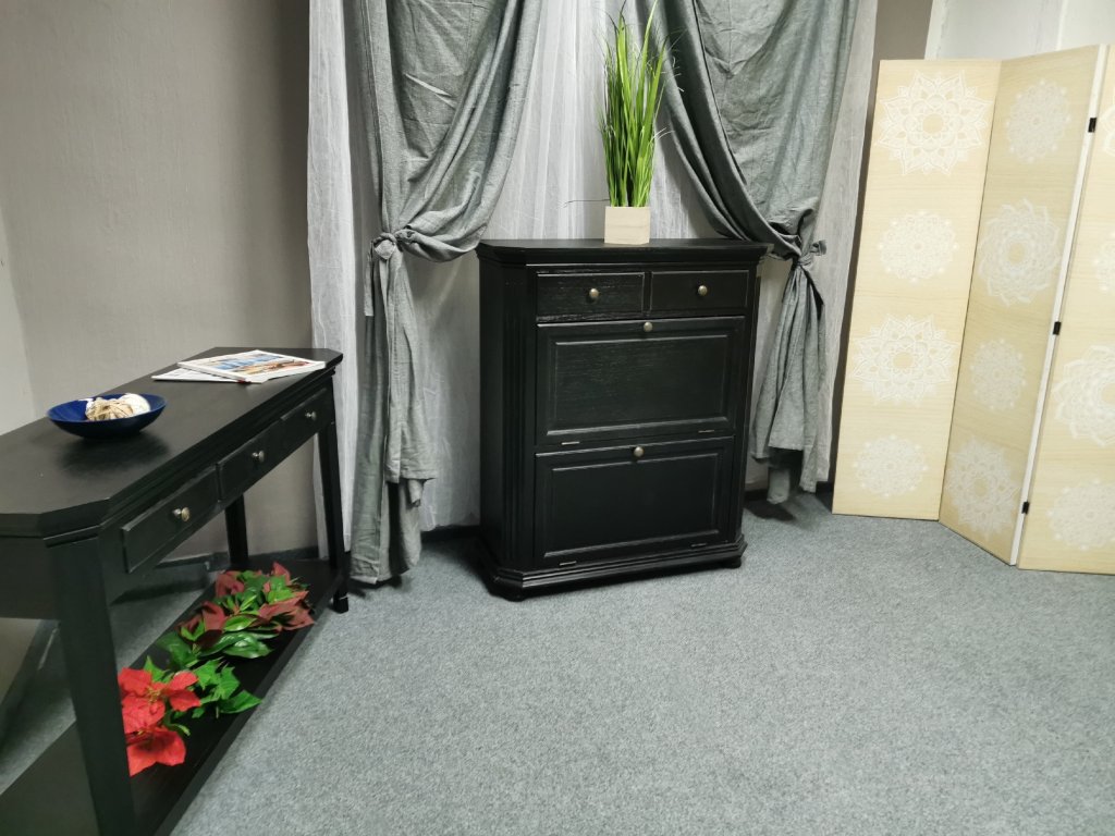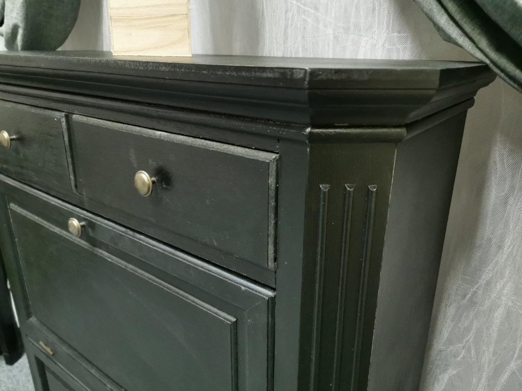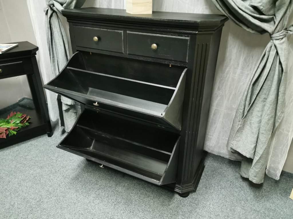 II. jakost (oděrky viz foto). Materiál dřevo, lamino. 2x výklopná dvířka, 2x šuplík. Šířka 93 cm, hloubka 35 cm, výška 110 cm. 1/60
