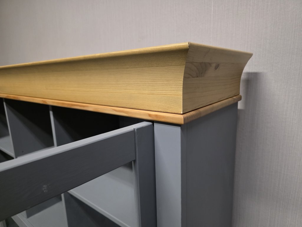Materiál masiv borovice. 2 dvířka. K dispozici 2 kusy. Šířka 139 cm, hloubka 31 cm, výška 108 cm. 300P