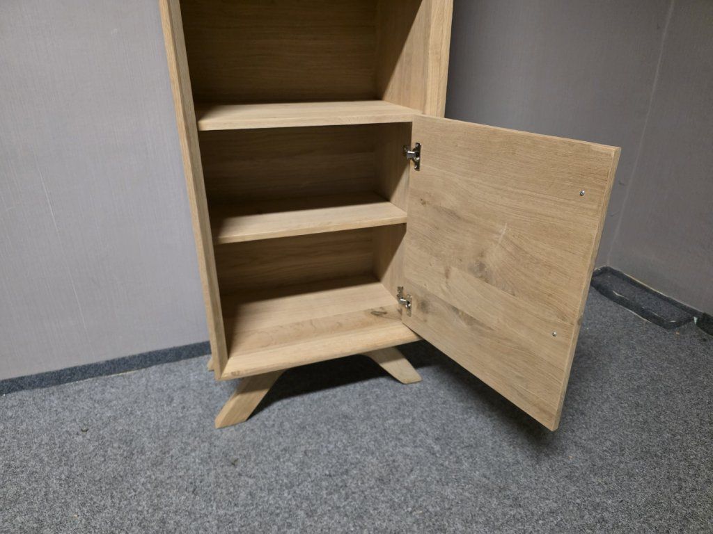Materiál masiv, dřevem dýhované recyklované dřevo. 1 dvířka s tlumením zavírání. ZNAČKA GRAY & JONES. Šířka 60,5 cm (nohy 64 cm), hloubka 43,5 cm, výška 206 cm.