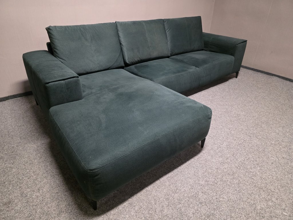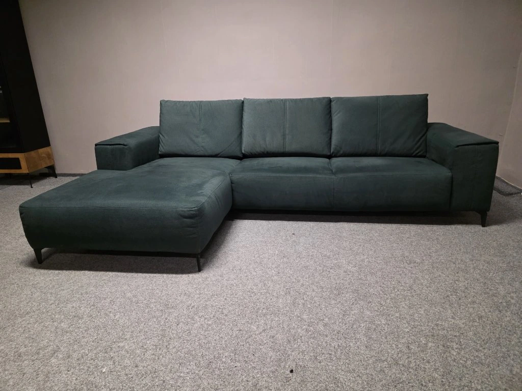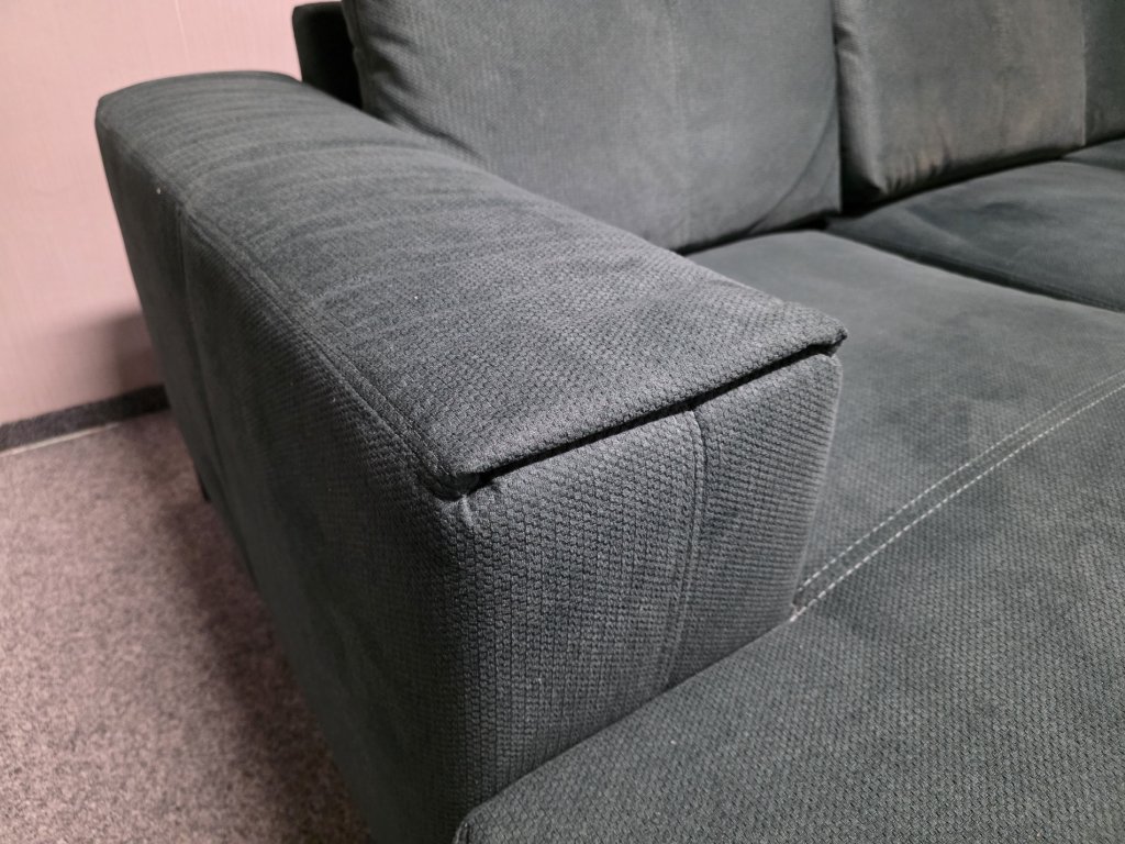 Zánovní (oděrka viz foto). Potah látka, celočalouněné. Nerozkládací, cena s polštáři. Zleva: 170x280 cm, výška 68-84 cm, výška sedáku: 43 cm, hloubka sedáku: 55-73 cm.